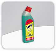 Detergent de toalete extrem de activ, pe baza de acid citric. Dizolva reziduurile/petele de grasime si urina. Vascozitatea sa il face eficacient chiar si pe suprafete verticale. Gatul indoit asigură o dozare economic a si garanteaza o aplicare corecta si in zonele greu accesibile. Uff elimina depunerile de var, unsoare, rugina si urină lasand in urma un iz placut , proaspat, persistent.